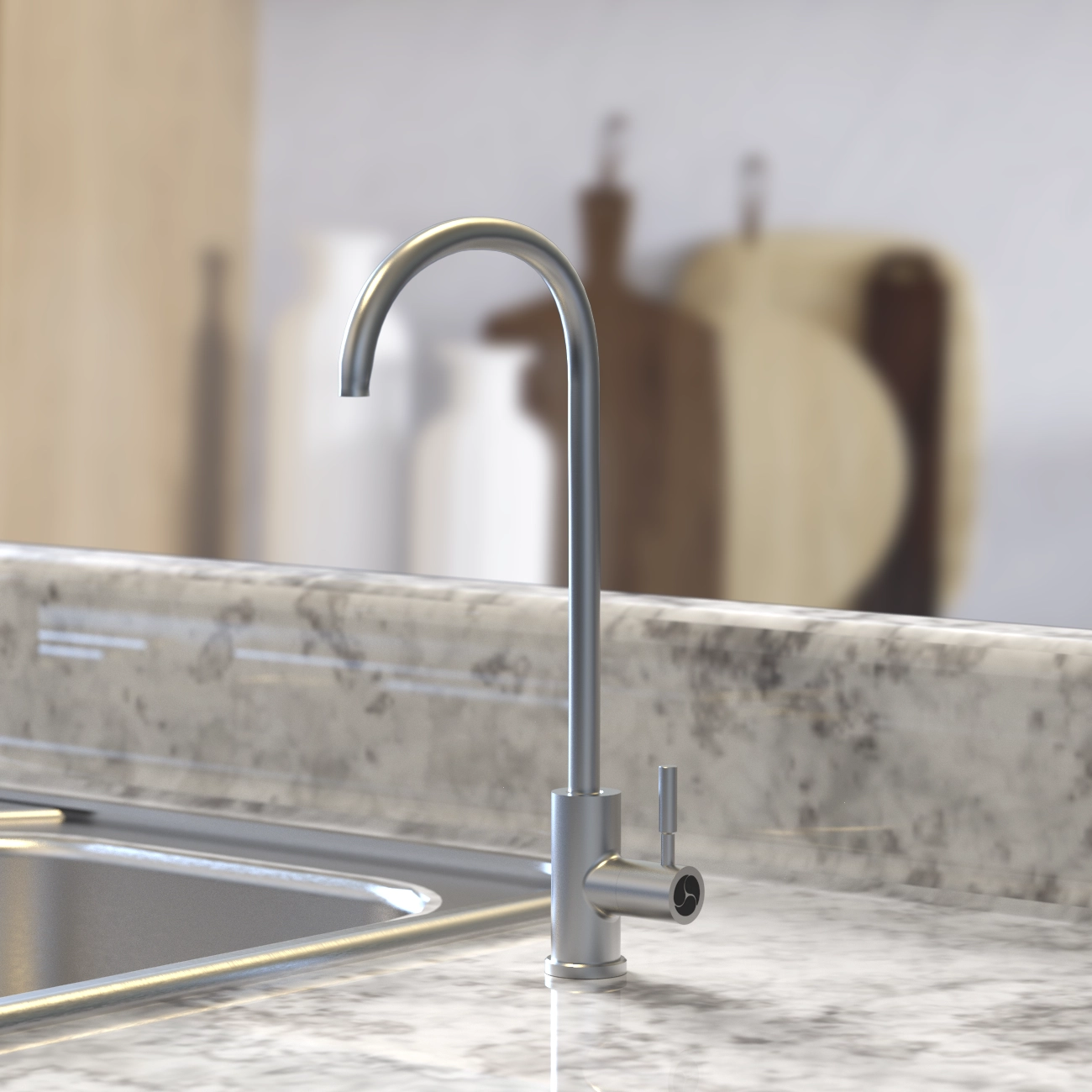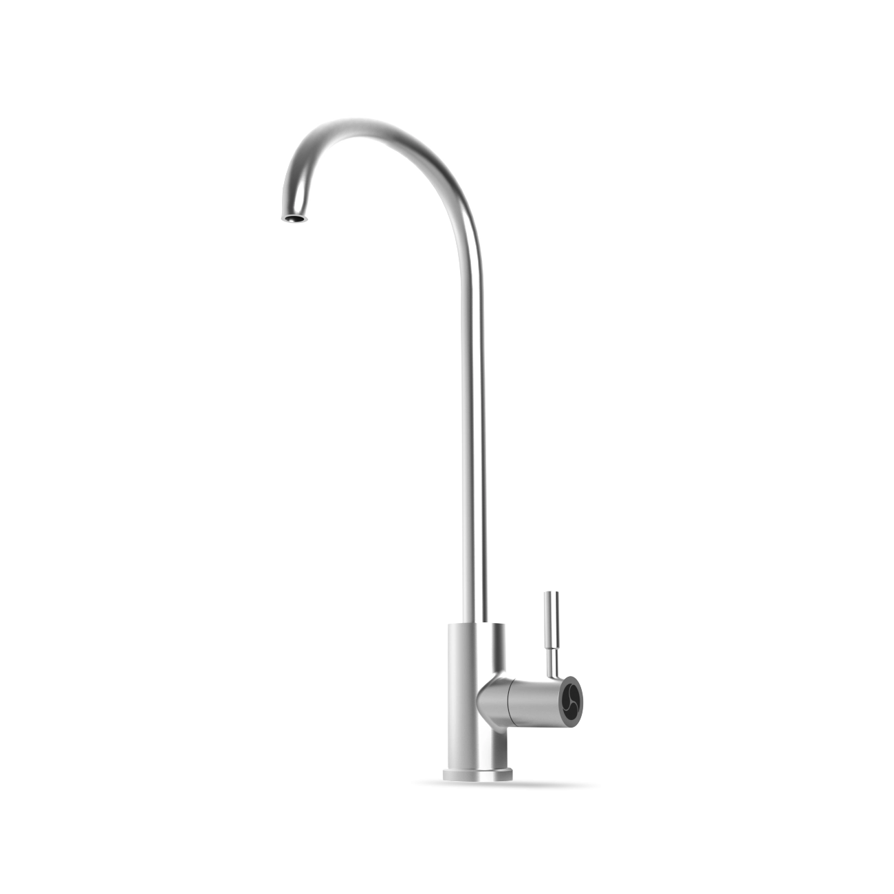 Hecha en acero inoxidable, con entrada de conector rápido a manguera de 1/4". Perforación de 3/8" con tuerca para fijación a mano, no requiere herramieta especial.